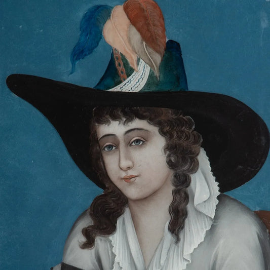 Circa 1796-1820 Chinese Export Reverse Painting on Glass of European Young Woman 19 1/4 x 13 1/2 inches