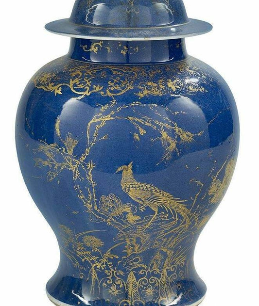 19th Century Chinese Powder Blue and Gilt Lidded Baluster Vase 16 inches Height Authenticated