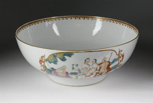 18th Century Chinese Export Famille Rose "Judgement of Paris" Punchbowl" 11 3/8 Inches in Diameter
