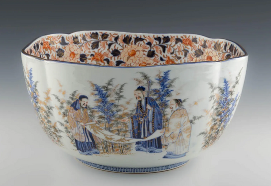 Japanese Meiji Period signed Fukagawa Porcelain Centerpiece Bowl