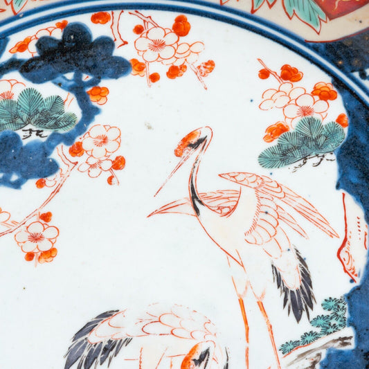 Japanese Imari 18th Century Charger 21inch Edo Period Cranes and Shishi