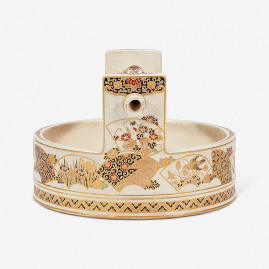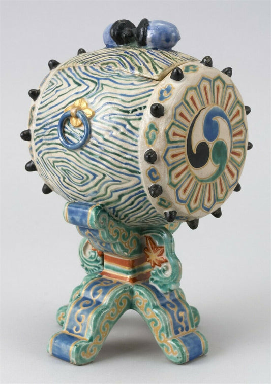 RARE: Japanese Edo Period Kyoto Satsuma Drum Censer Box 8 1/2 Inches in Height
