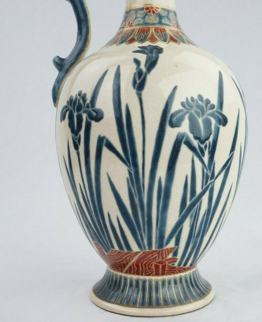 Antique Japanese Satsuma Gosu Blue Signed Ewer 13 1/4 Inches in Height
