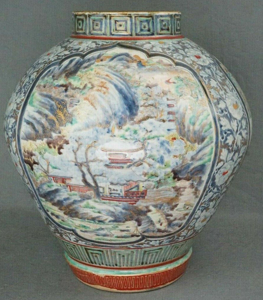 17th C Japanese Porcelain Baluster Vase Ko-Imari in Rare Chinese Style 11 Inches