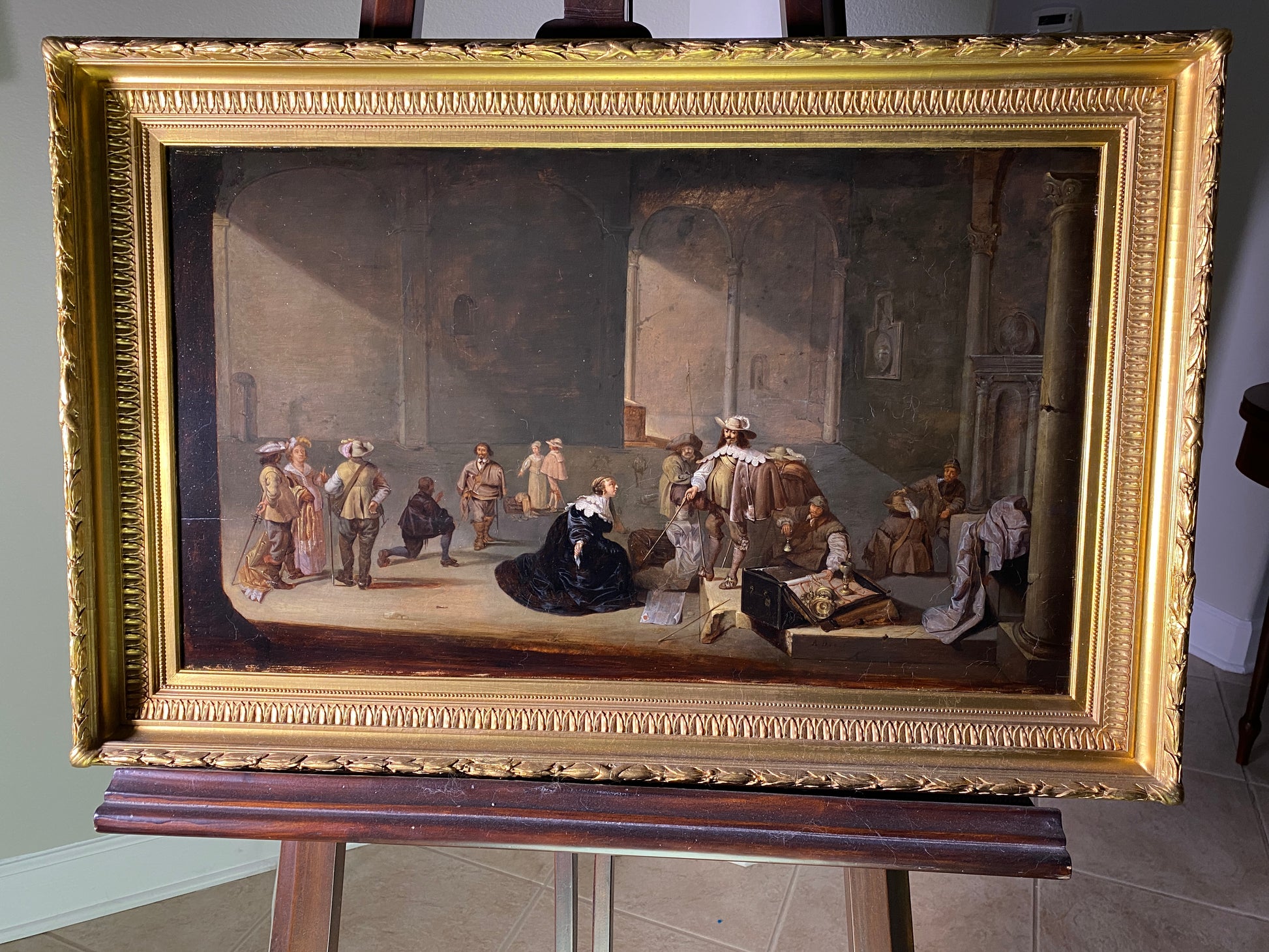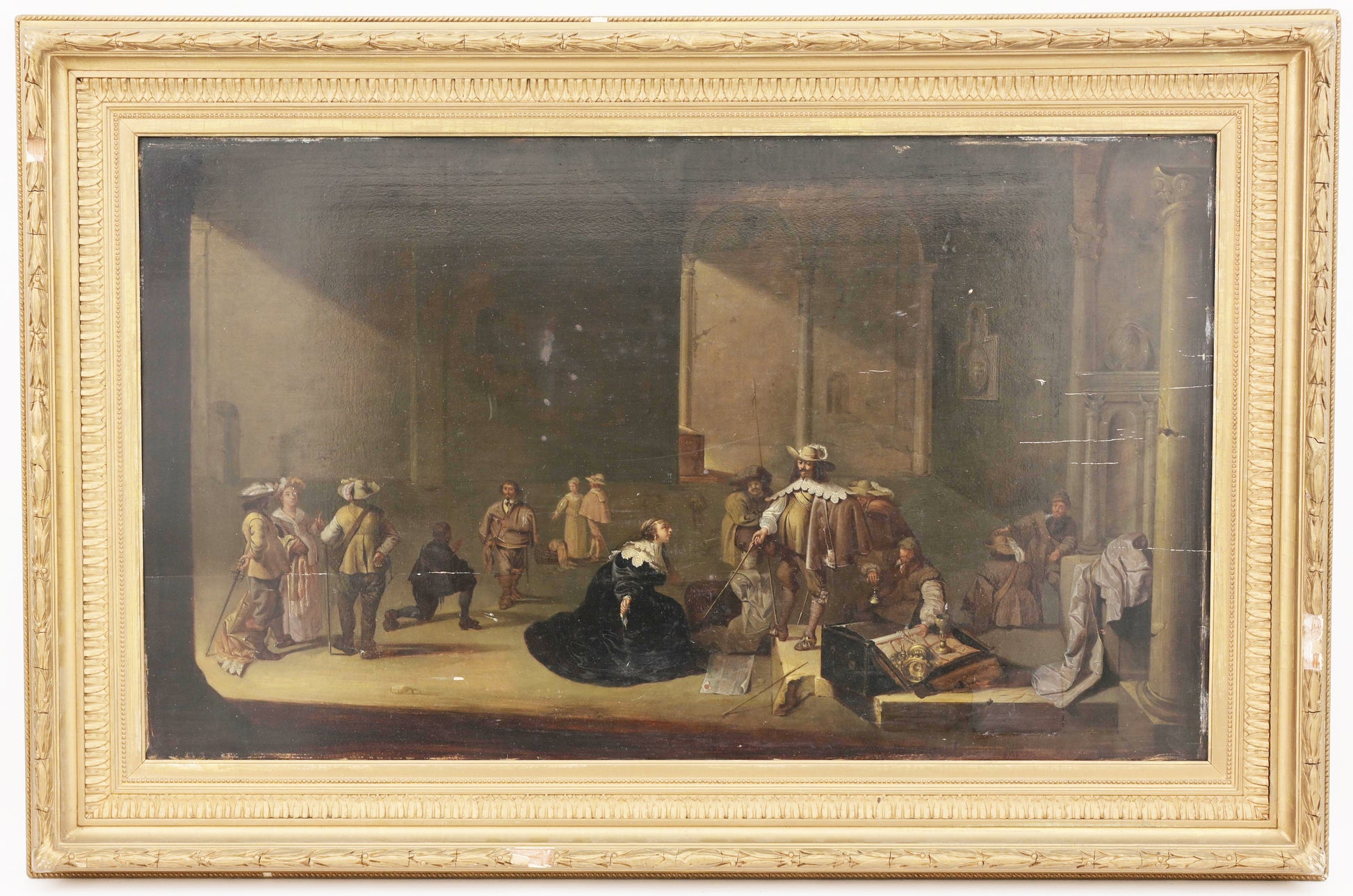 18th / 19th Century Henrietta Maria presenting herself with dowry to King Charles I of England Dutch Old Master