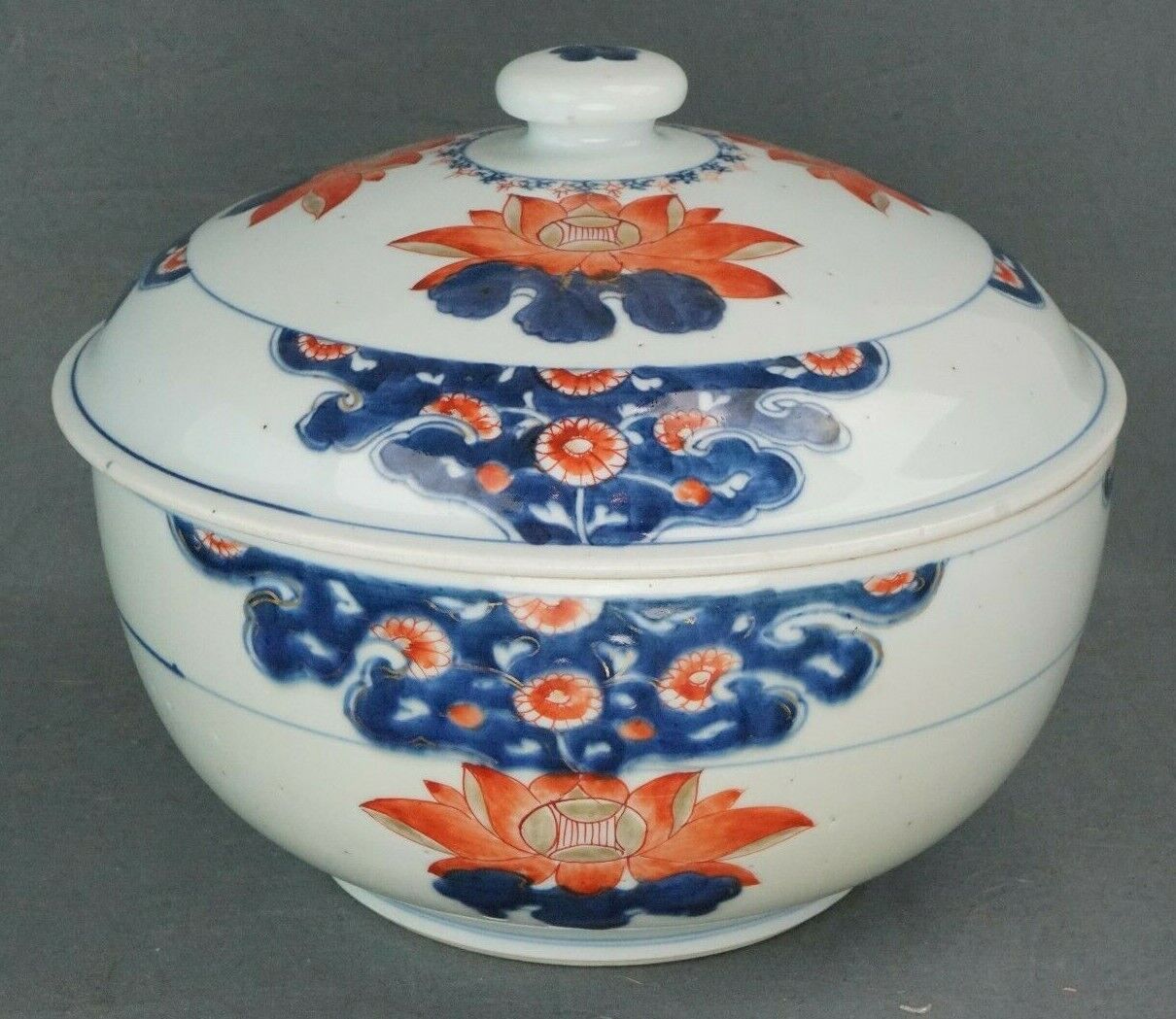 18th Century Kangxi Chinese Imari Export 9 1/2 Inch Lidded Serving Bowl