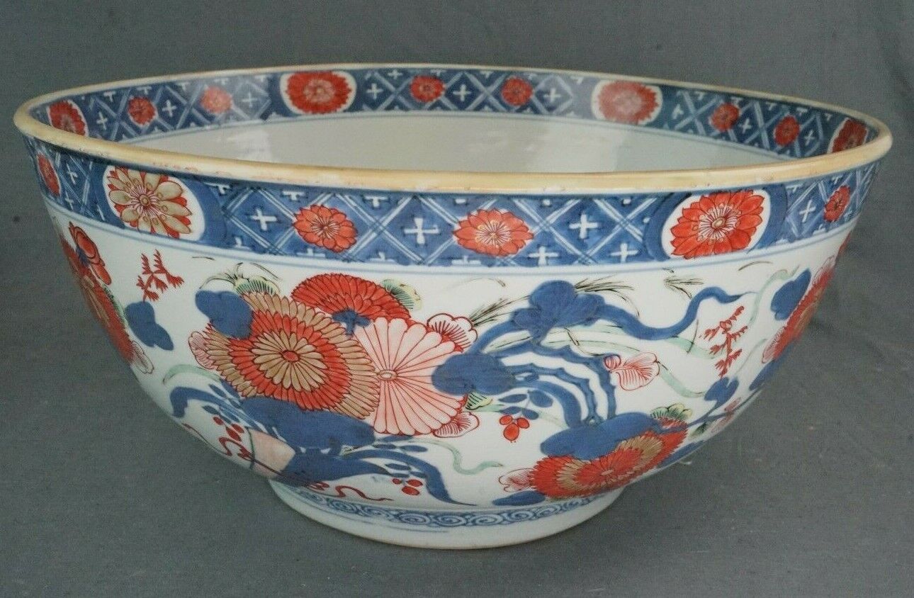 18th Century Kangxi Chinese Imari Export Punch Bowl 14 Inch Diameter