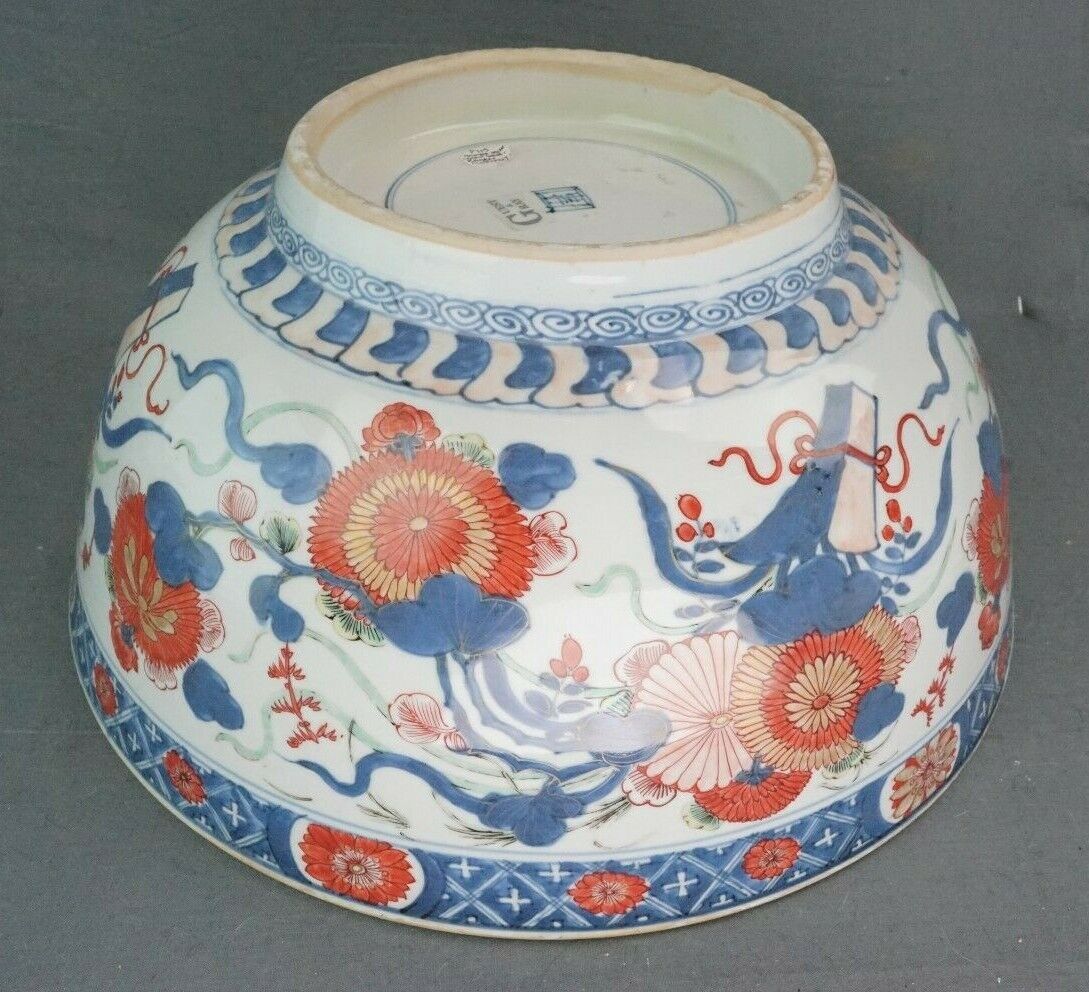 18th Century Kangxi Chinese Imari Export 14 Inch Diameter Punch Bowl