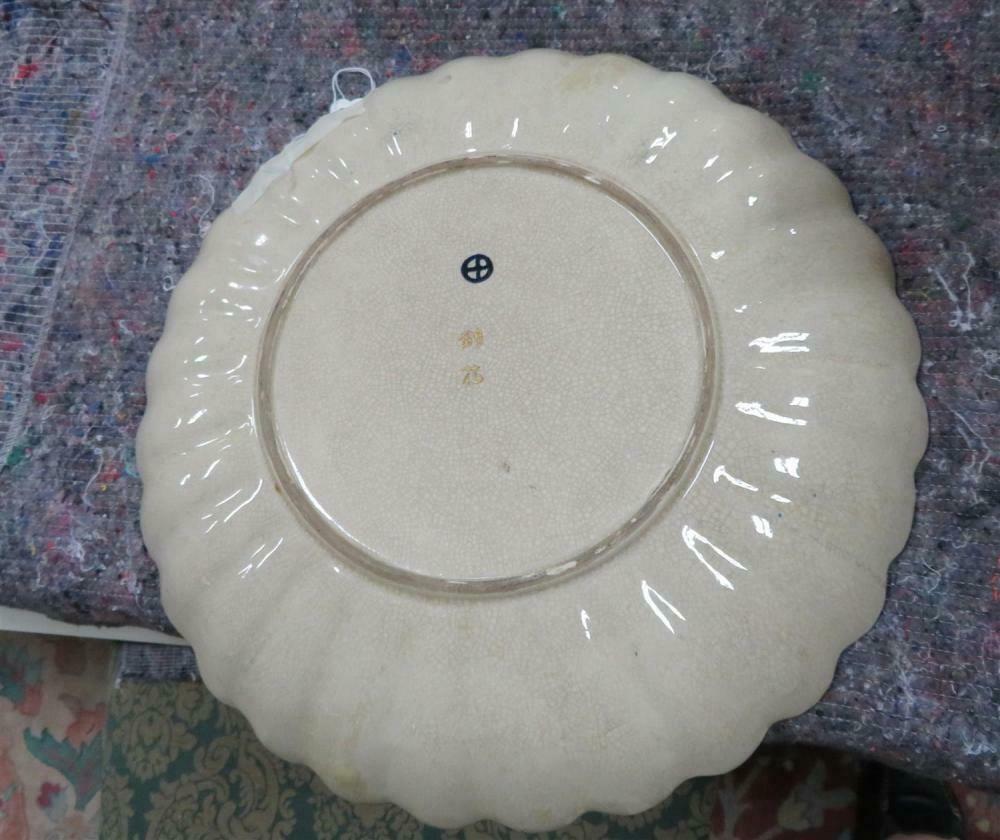 19C Japanese Imperial Satsuma Gosu Blue Signed Scalloped Charger 14 7/8 Inches