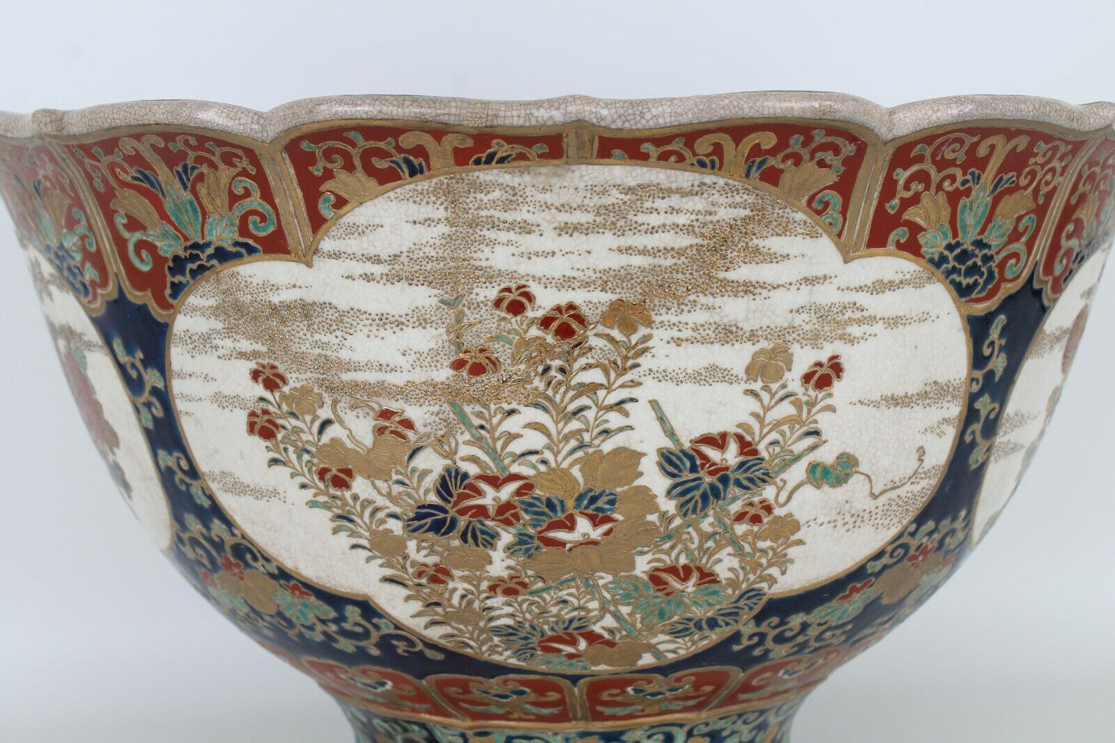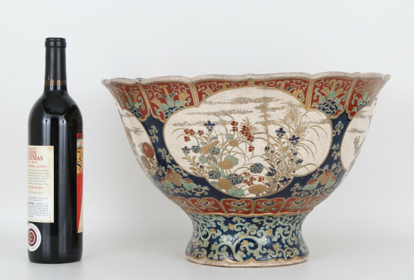 19th C Japanese Imperial Satsuma Gosu Blue Signed Bowl 15 3/4 Inch diameter