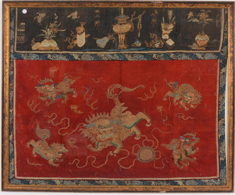19th Century Chinese Silk Foo Dogs Precious Objects
