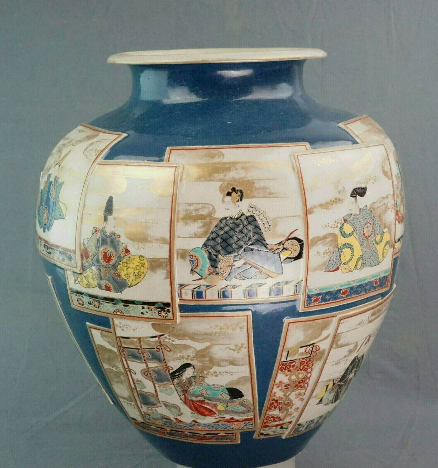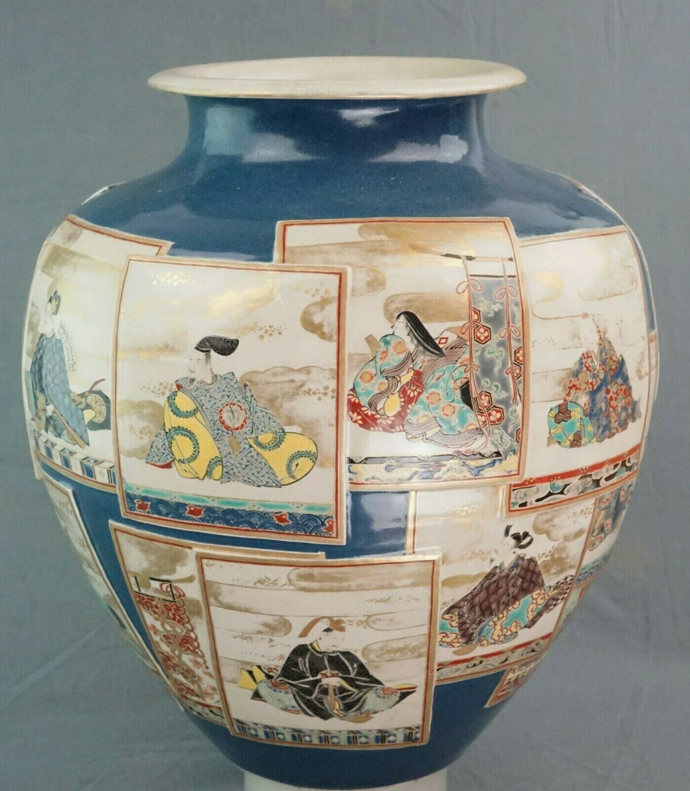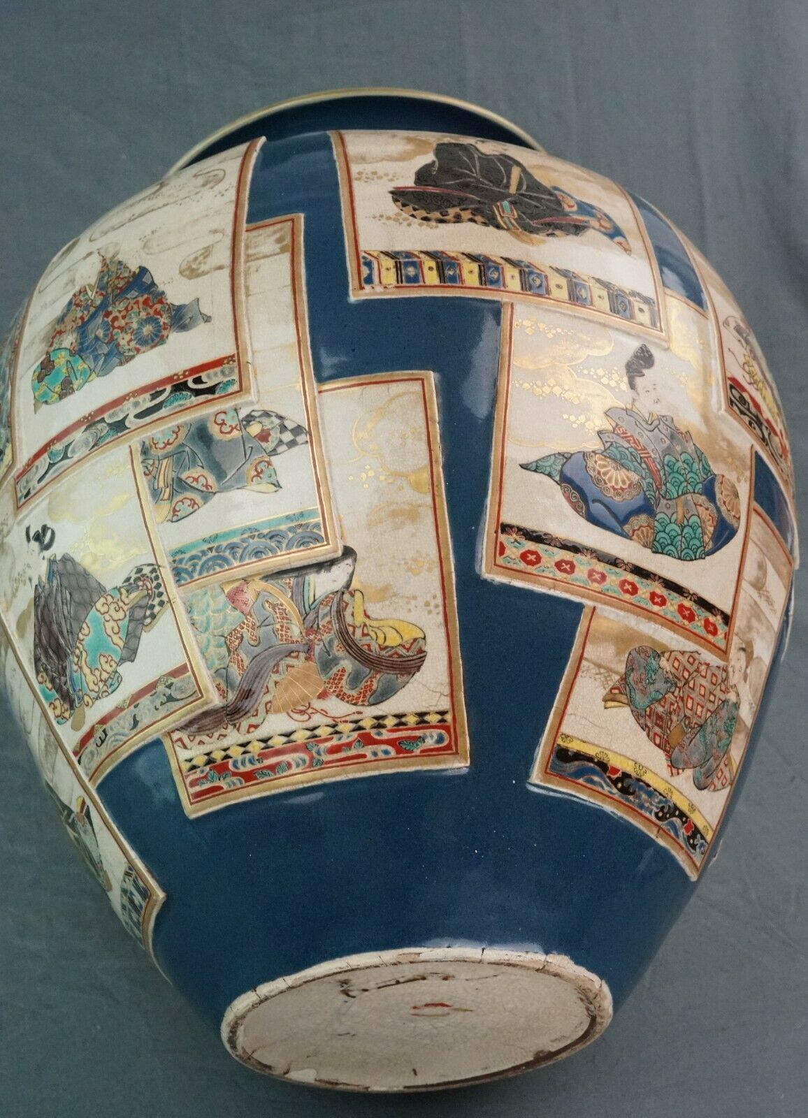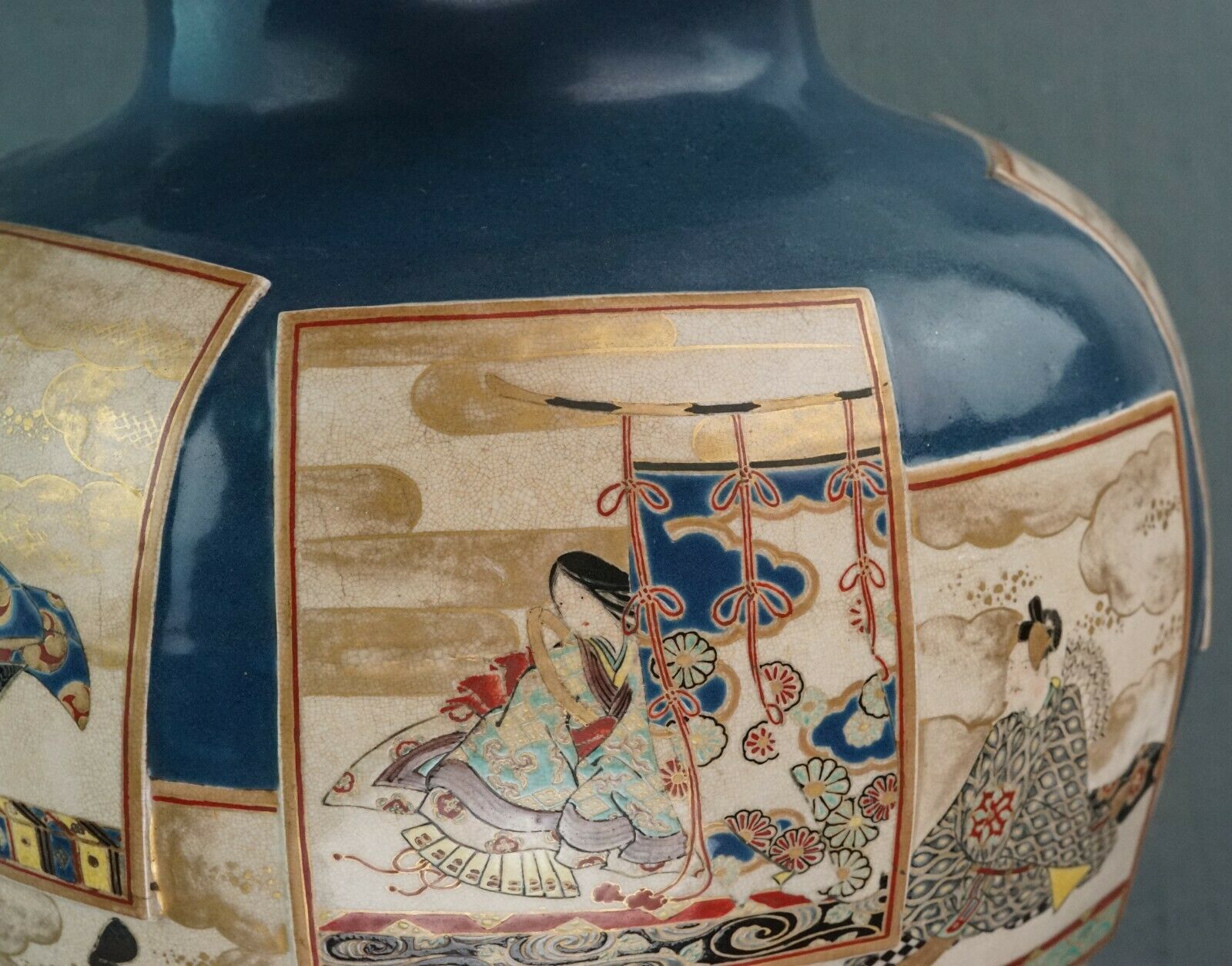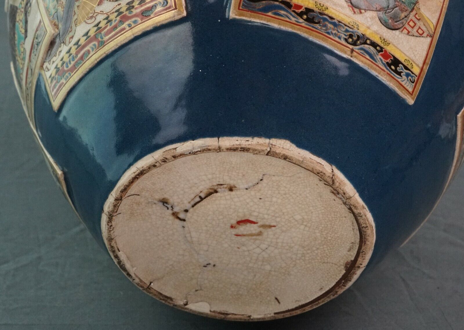 Edo 19C Imperial Satsuma Gosu Blue Vase Museum Quality 14 Inches Tall