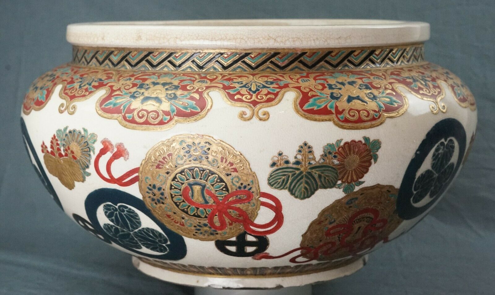 Edo Imperial Satsuma Gosu Blue Jardinière Museum Quality 16 Inch Wide Signed