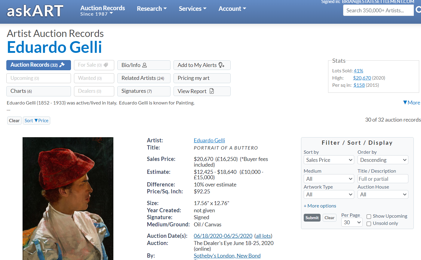 Eduardo Gelli works have sold at Sotheby's for more than $20,000 (see final image)