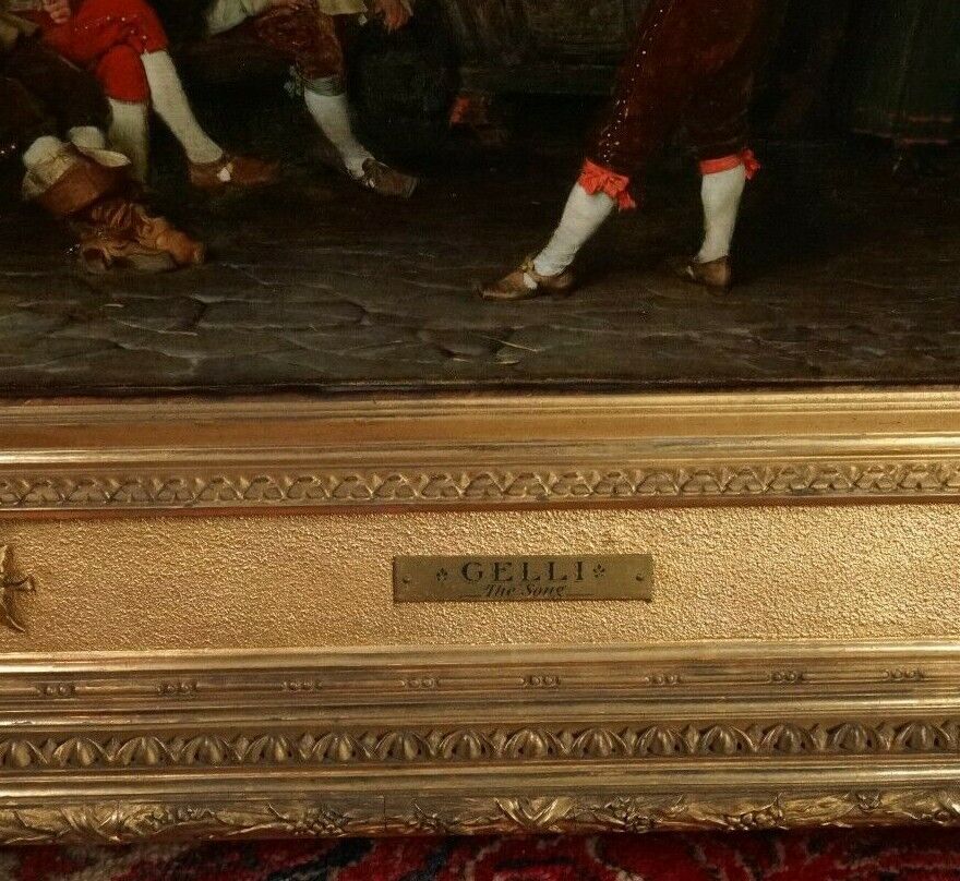 Eduardo Gelli 1852 - 1933 Italian Oil on Canvas "The Song" Tavern Scene Dated 1886