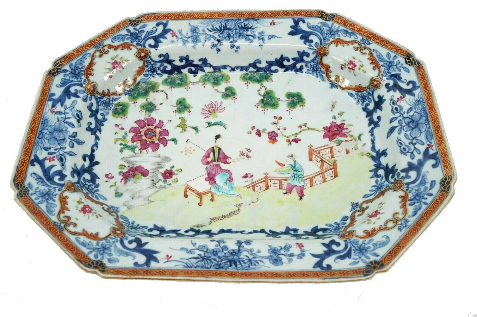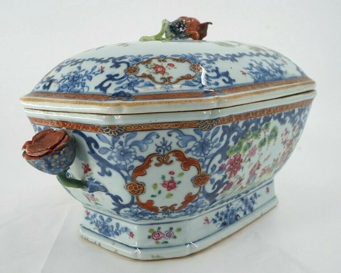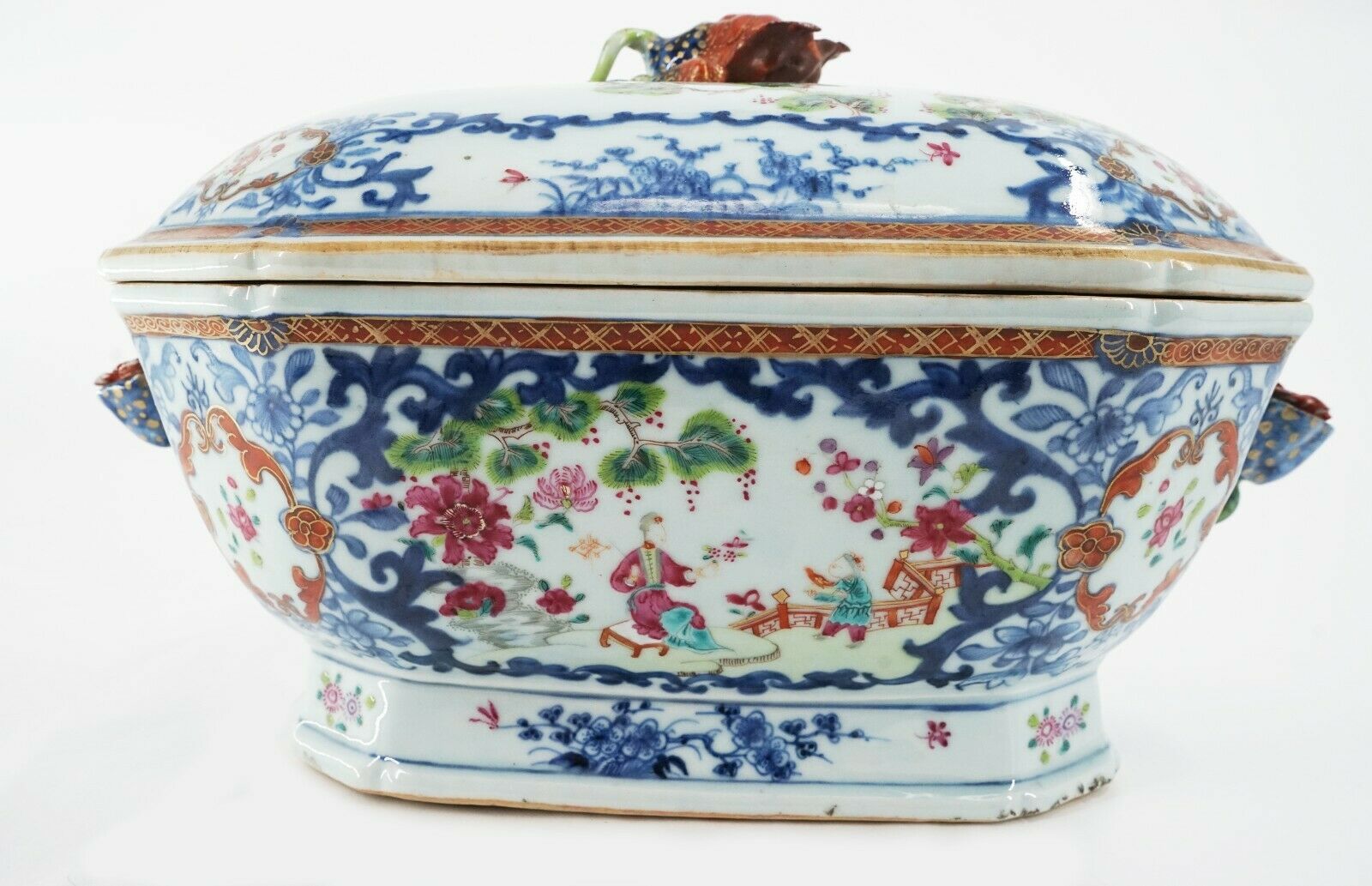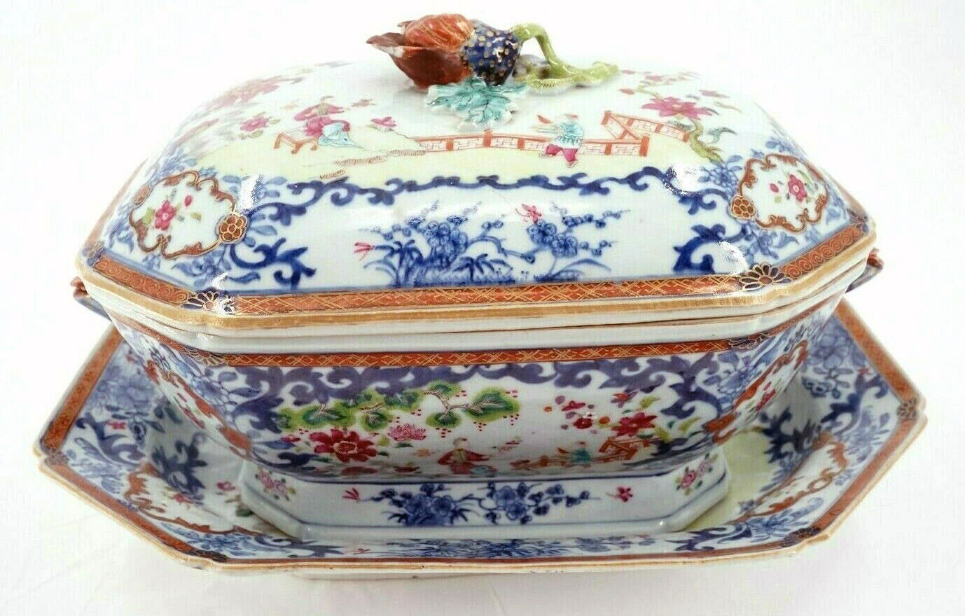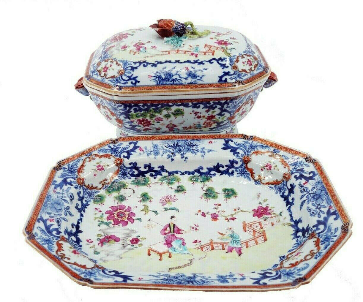Late 18th Century Chinese Famille Rose / Tobacco Pattern Tureen with Base Plate