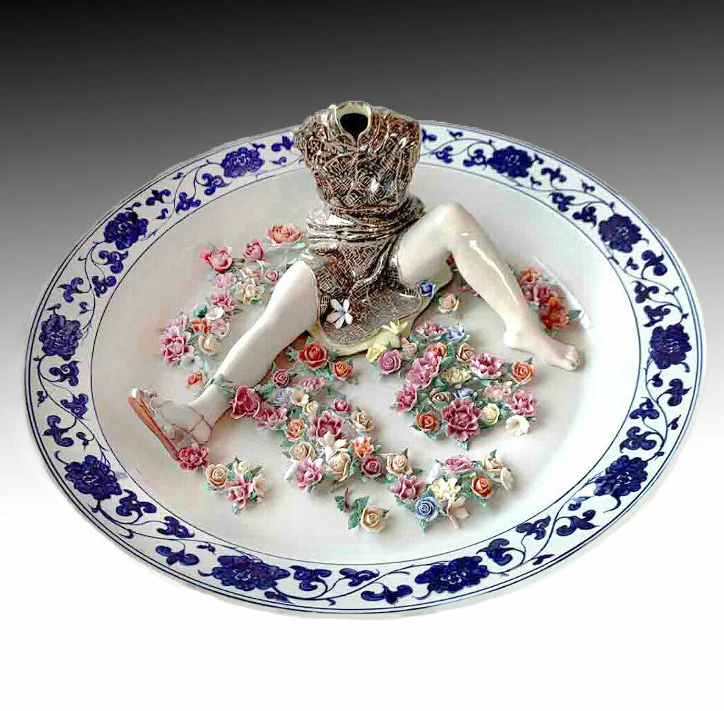 Liu Jianhua is best-known for several series of headless and armless female porcelain figures dressed in cheongsams, a body-hugging one-piece Chinese dress fashionable in the Shanghai of 1920s, and high heels, lying in erotic poses.